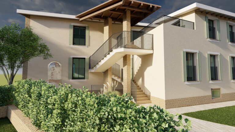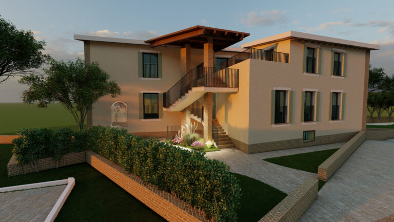 Il progetto architettonico sviluppato per il terreno prevedeva un intervento di ristrutturazione e ampliamento attraverso il sollevamento di parte del terzo piano dell’edificio esistente. L’obiettivo era quello di valorizzare al massimo il volume disponibile e realizzare quattro unità abitative indipendenti, caratterizzate da spazi ampi, ben distribuiti e adatti alla vita familiare.Il progetto comprendeva:Due appartamenti su due livelli, sviluppati tra il piano terra ed il primo, entrambi configurati come trilocali con zona giorno open space, tre camere da letto, doppi servizi e accesso diretto al giardino.Due appartamenti al piano secondo, ciascuno dotato di 2 camere da letto, cucina abitabile, soggiorno ampio e doppi servizi.La distribuzione delle unità era studiata per garantire massima indipendenza, comfort e luminosità, con particolare attenzione alla vivibilità degli spazi interni e alla fruizione degli affacci esterni. Il progetto includeva inoltre accessi separati, e predisposizione per impianti a basso impatto energetico.